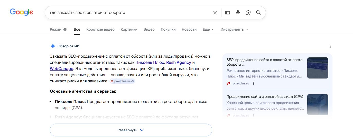 Если ваш сайт не используется в AI-ответах, вы выпадаете из новой модели поиска, даже если занимаете хорошие позиции в классической выдаче.