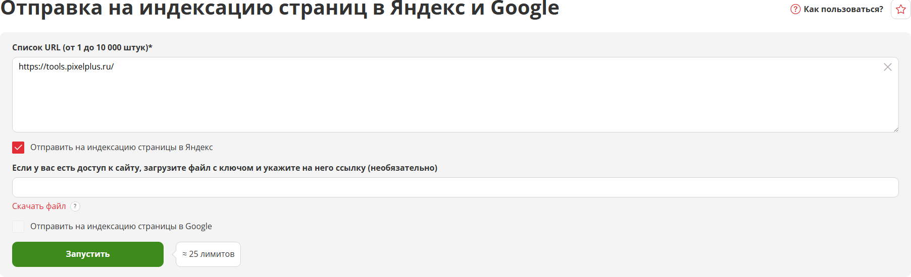 Как пользоваться инструментом «Отправка на индексацию страниц в Яндекс и Google»?