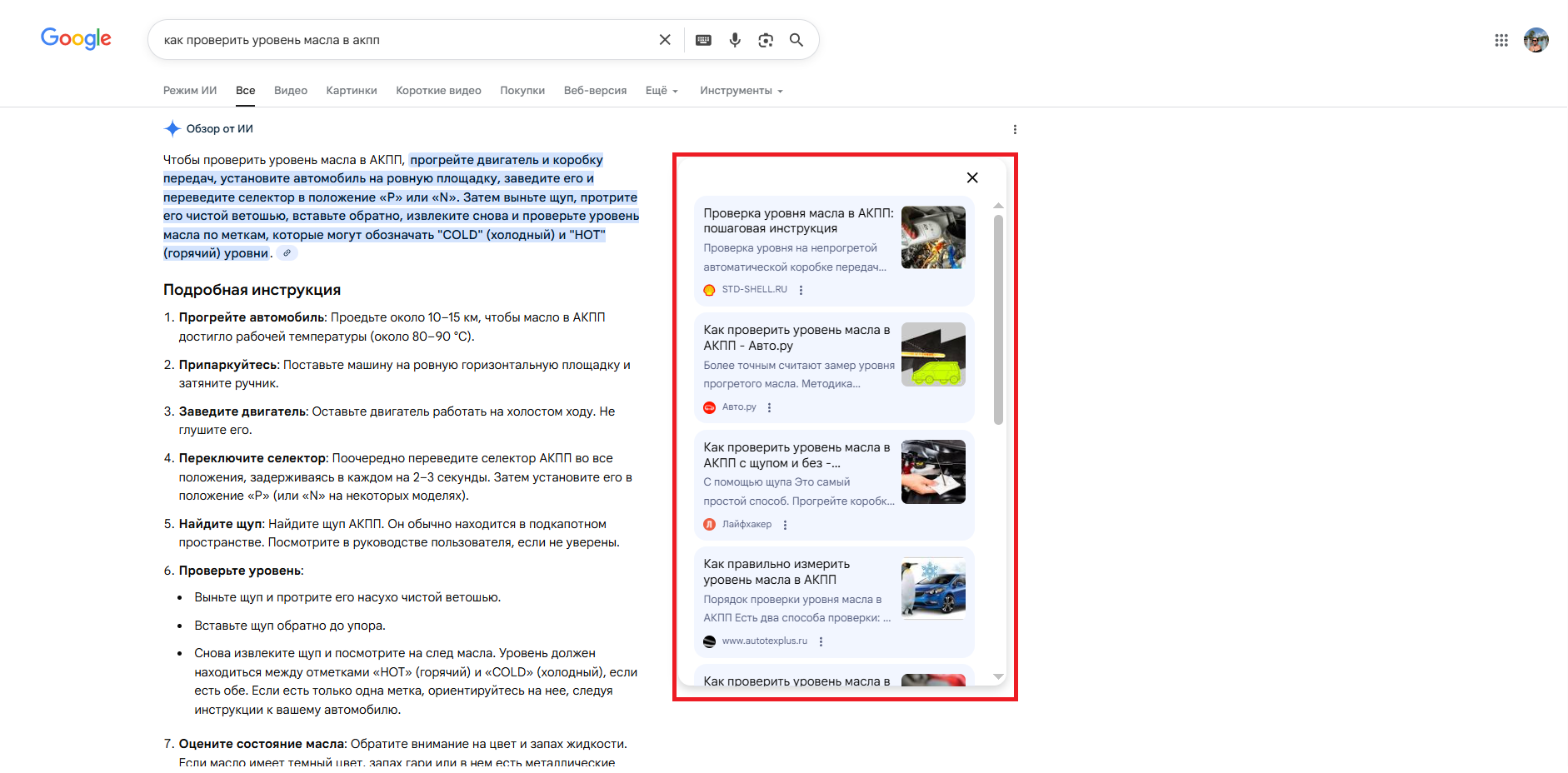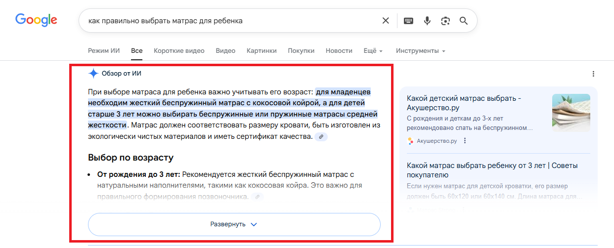 Как выглядит интерфейс AI Overview (Обзор ИИ) от Google