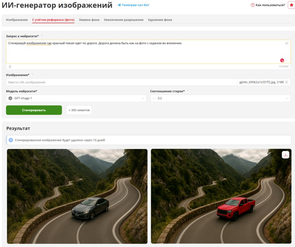 - Модификация и улучшение изображений — изменение стиля, цветовой гаммы, детализация или рестайлинг.